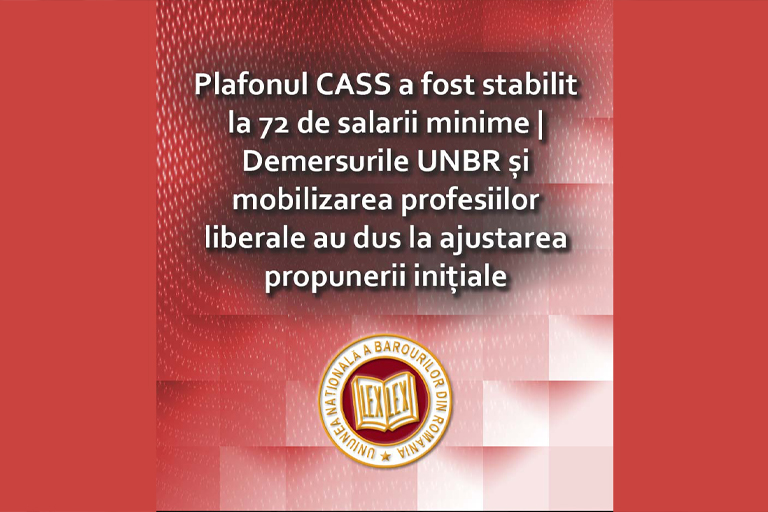 Plafonul CASS a fost stabilit la 72 de salarii minime | Demersurile UNBR și mobilizarea profesiilor liberale au dus la ajustarea propunerii inițiale